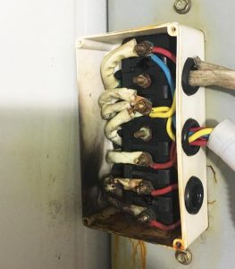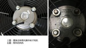 打开冷风机的接线盒,最终找到了跳闸的症结所在:两个风机已被烧毁。