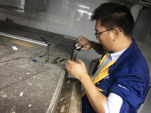 艾思吉维修人员沿电路进线查找故障点,逐步排除了电控箱、制冷机组、线管开关等,最终把故障锁定在了冷风机上。仅仅使用了三年多的冷风机,其外表面漆层已经出现起皮、掉漆、开裂现象,裸露出的钣金也是锈迹斑斑。由此可见该冷风机为节省成本连起码的喷漆工艺也不合格,面子工程都不好好做。