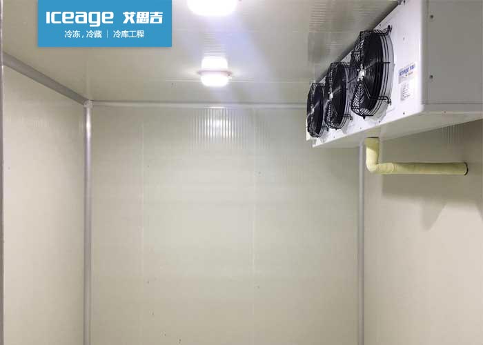 为此在机组机组的配置上,艾思吉为这个占地 10 平米、高 2.4 米的冷冻库配备了谷轮 Copeland 的 ZB21KQE 型压缩机,全套机组配件膨胀阀、电磁阀、过滤器,压力控制器采用的丹佛斯 Danfoss 品牌配件,并且机组机箱内使用使用隔音棉降噪处理。而库内蒸发器使用型号为 IDM-3.9/22 高能效冷风机,配备马尔牌外转子电机,低噪音、低能耗。